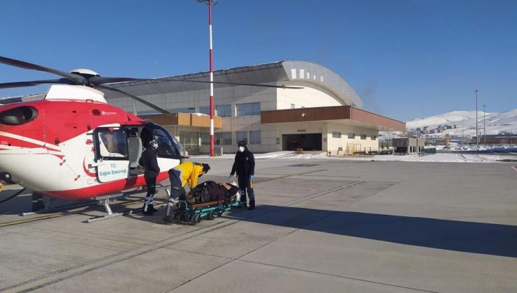 Çatak Devlet Hastanesine kaldırılan 33 yaşındaki Emine Alptekin’in kanaması ve düşük riski artınca il merkezine sevkine karar verildi. Olumsuz hava şartları ve hastanın ciddiyeti göz önüne tutularak İl Sağlık Müdürlüğüne ait ambulans helikopter sevk edildi. İlçe merkezinden alınan hasta kadın, ambulans helikopterle Van Ferit Melen Havalimanına getirildi. Burada hazır bekletilen ambulansa alınan hasta, Van Eğitim ve Araştırma Hastanesine kaldırılarak tedavi altın alındı.