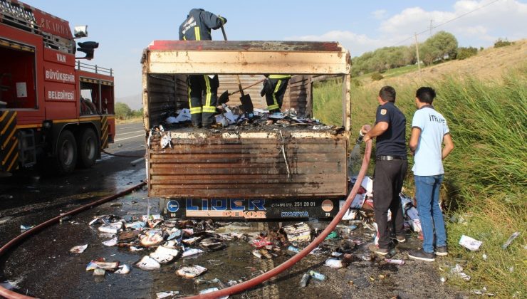 Van-Erciş karayolu üzerinde seyir halindeki tırın dorsesinde çıkan yangın itfaiye ekipleri tarafından söndürüldü.