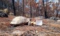 Yemeklerini yangından sağ kurtulan hayvanlarla paylaştı
