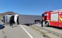 Kontrolden çıkan tır yan yattı: 1 yaralı